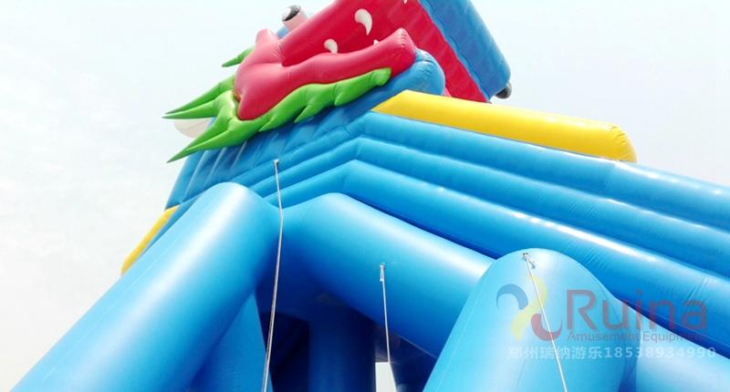 充氣水滑梯造型變化多端、游樂趣味濃烈、驚險(xiǎn)刺激而不失安全,深受兒童喜愛。