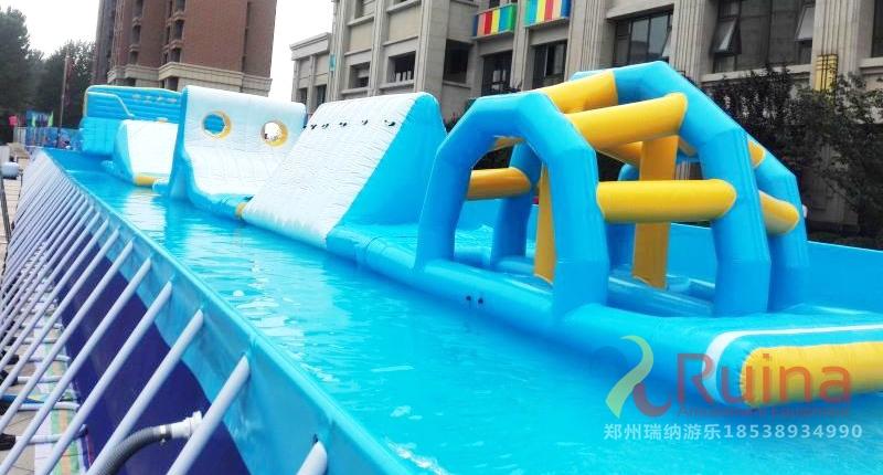 水上沖關(guān)所采用的支架水池是用高強度的環(huán)保PVC和國標無縫鋼管組成的,可以極大地保證游客的嬉水安全。每個支架水池都配有自動化凈水一體機,不間斷地進行水質(zhì)處理,保證水質(zhì)安全,讓游客更放心。歡樂盛夏,水上沖關(guān)等您來挑戰(zhàn)。