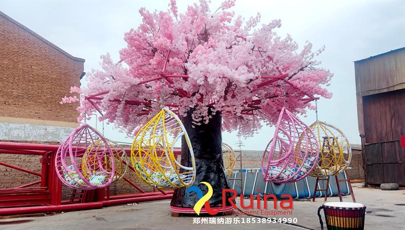 網(wǎng)紅許愿樹就是在人們美好期許下的產(chǎn)物。它擁有美麗的外觀,粉色的樹冠讓人們仿佛能看到粉紅泡泡在閃爍,搶眼的外觀總能吸引很多目光。一棵樹再美麗也只是一棵樹,為了增強(qiáng)他的趣味性,聰明的商家又給它賦予了燈光,旋轉(zhuǎn)等功能,游客可以在美麗的許愿樹下乘坐秋千椅上休息,拍照往往能獲得意想不到的效果!